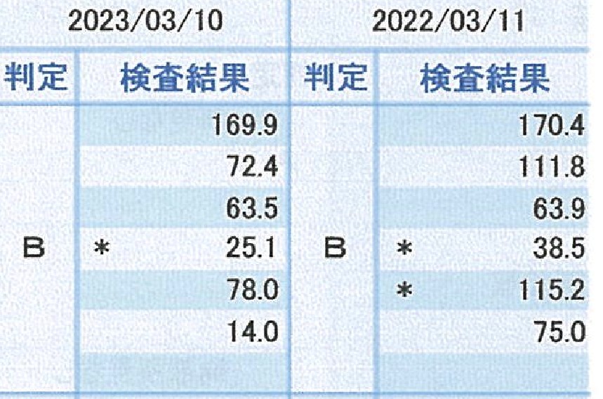 健康診断の数値がこちらです。