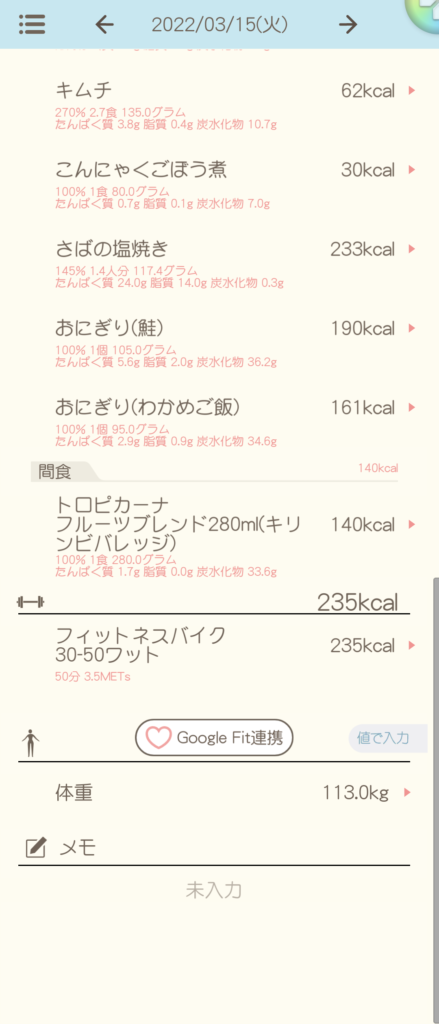 前回の記事で紹介したカロリー計算アプリでの記録も本格的にスタートさせました。